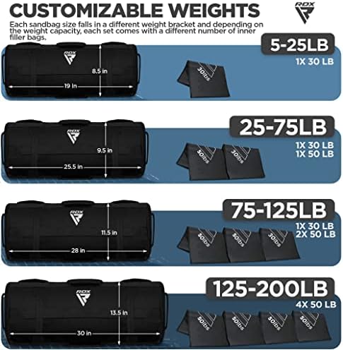 RDX Sandbag for Fitness Weights Training, Unfilled Power Bags with Handles, 5-200 LBs Adjustable Weighted Slam Bag for Strength Powerlifting Running Heavy Workout Home Gym Exercise, Sold AS UNFILLED